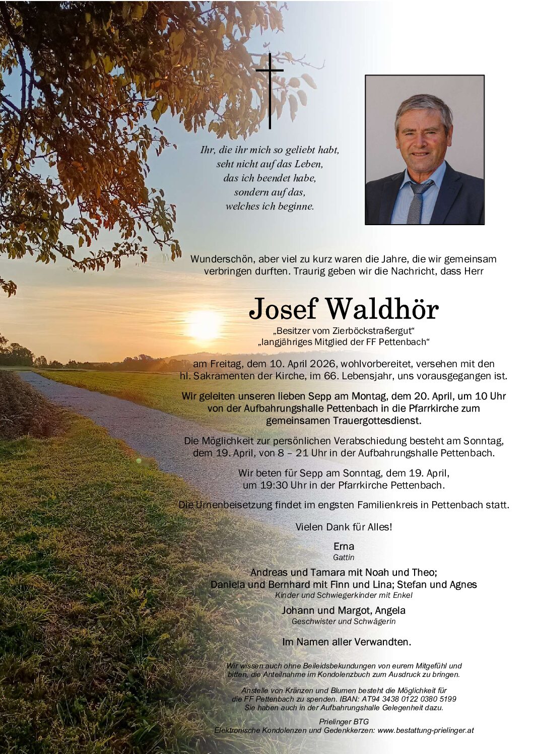am Montag, dem 20.4 um 10 Uhr – Aufbahrungshalle Pettenbach.
