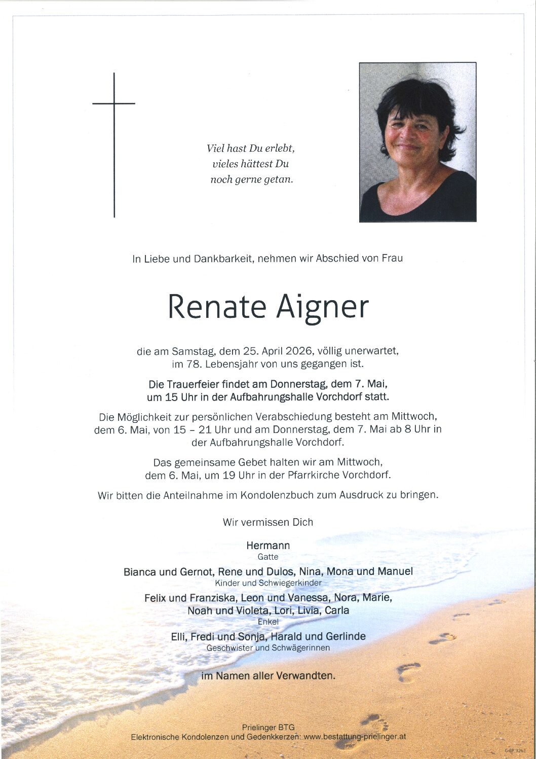 am Donnerstag, dem 7.5 um 15 Uhr – Aufbahrungshalle Vorchdorf.