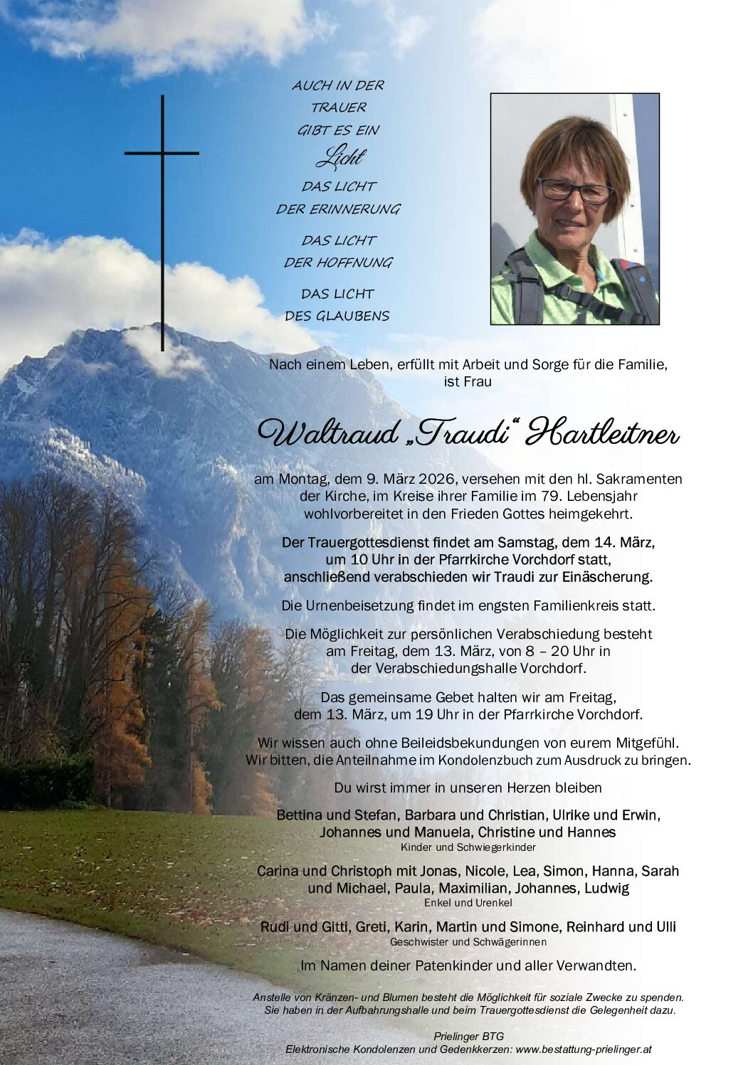 Die Liebe zur Natur und zu den Bergen sowie ihre tiefe Verbundenheit zur Familie werden in vielen schönen Erinnerungen weiterleben. Möge euch dieser Gedanke Trost und Kraft in dieser schweren Zeit geben.